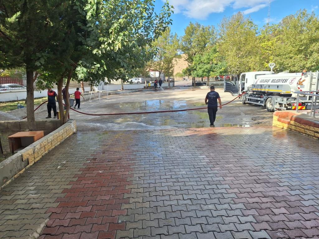 Gölbaşı Belediyesi itfaiye ekipleri okul bahçemizi yıkayarak öğrencilerin daha temiz bir bahçede oynamasına olanak sağladı.